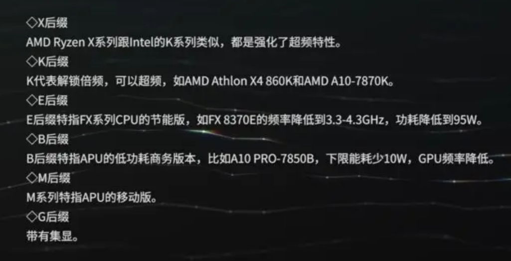 AMD常见的CPU系列: