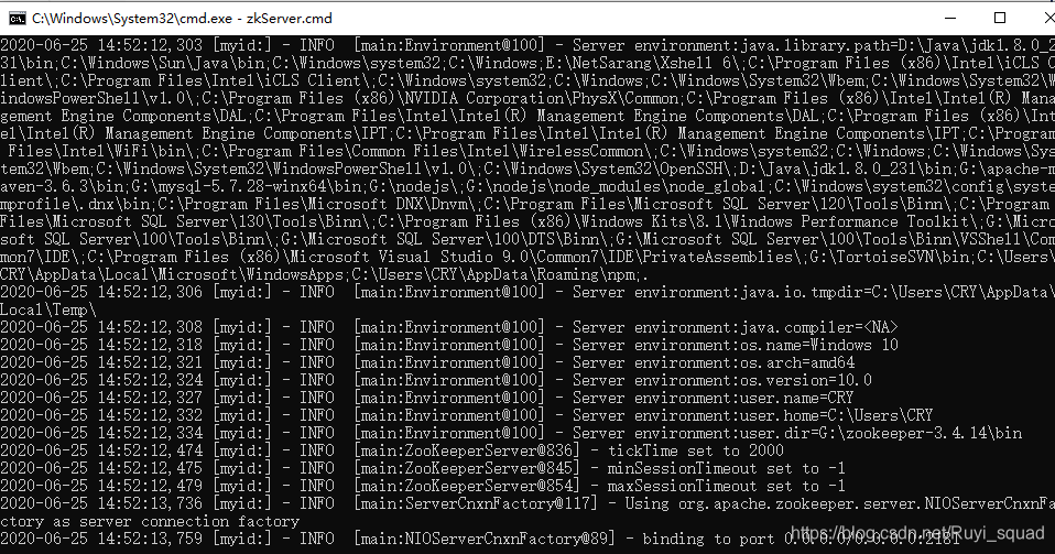 - bin下再执行zkServer.cmd命令,出现以下界面即成功。