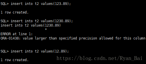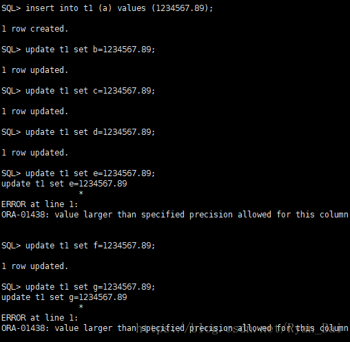 - number(7,2)):有效数值长度为七位,精度为小数点后两位,整数位最长长度为五位,小于插入的数值,插入数值异常