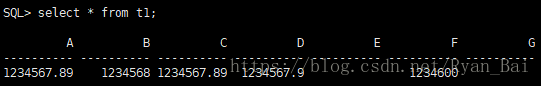 update t1 set f=1234567.89;