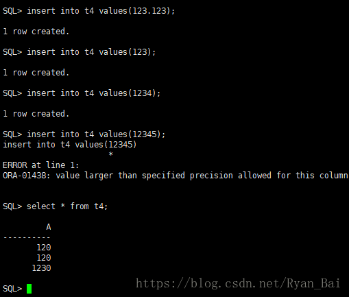 create table t4 (a number(3,-1)); - 插入测试数据