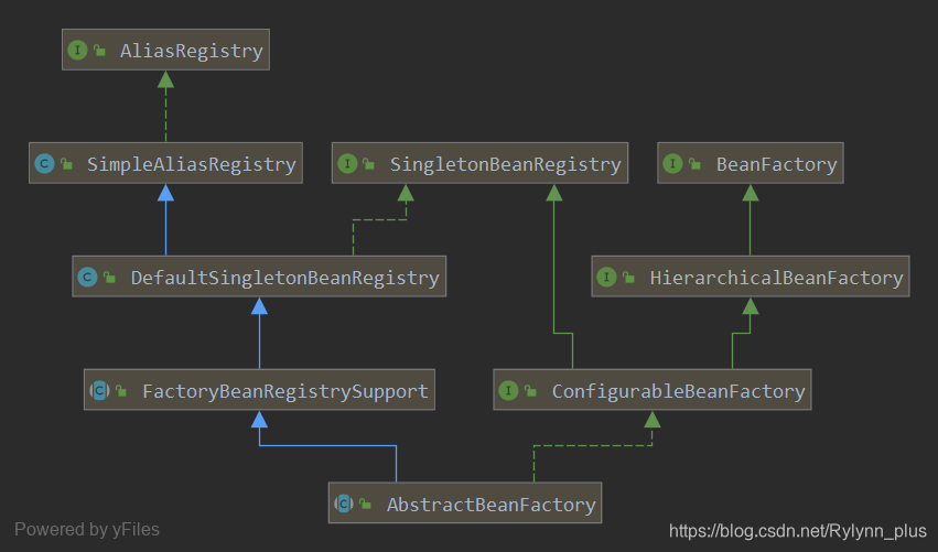 AbstractBeanFactory:单例对象管理能力+可配置;获取bean的总体流程在doGetBean已经成型