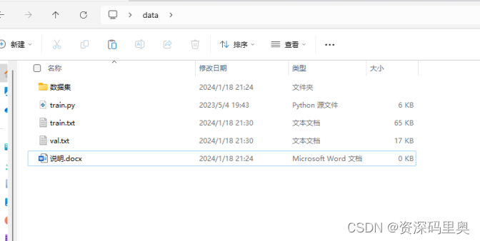 有两个文件夹一个是存放数据集的文件。
