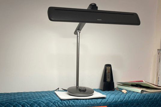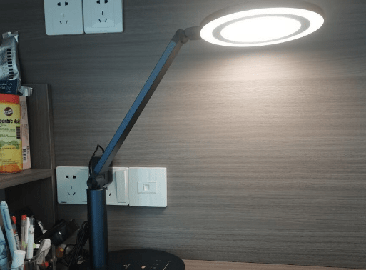 松下致皓台灯采用圆形底座设计,上面有可视化触控面板,支持无极滑动调光,也可设置30秒延时关灯、45分钟定时休息等功能,科学用眼比较方便。该台灯支持智能感应,自动调节亮度,采用91颗松下定制灯珠发光,达到国家标准AA级,光线体验比较明亮均匀,Rg0防蓝光危害也还不错。支持防频闪和眩光,显色指数达到Ra97,灯光色彩表现也比较真实,体验舒适,只是台灯本身稍微偏重,拿放不太友好。