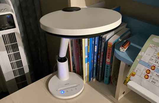 欧普照明 元耀台灯发光功率14.5W,相对较低,所以采用直下式发光处理提高光线照度,满足国标AA级,但同时也牺牲了一定的均匀柔和度,光线舒适方面不及侧发光台灯。其他方面,有定时提醒和延时关灯功能,比较实用。显示性达Ra95以上,看物体色彩偏差较小,Rg0防蓝光也还不错,减少蓝光伤害。底座有滑动凹槽,可手动调光,但是没有自动调光功能,护眼能力较弱。