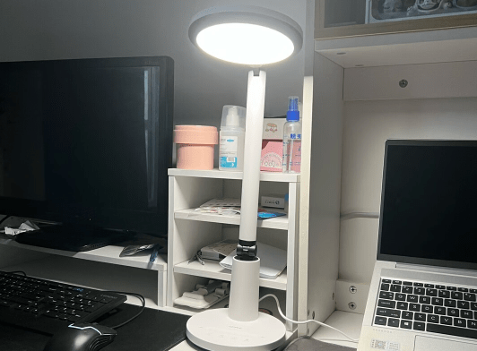 欧普照明 元耀台灯为标准4000K中性色温设计,光线偏温暖,采用直下式出光方式,弥补了功率偏小导致的亮度不足问题,符合AA级照度标准,但是光线均匀度不及侧发光台灯,略微有些刺眼。支持手动滑动调光,凹槽可盲触,显色指数满足Ra95,色彩还原真实,但是无法自动感应调光,护眼不太方便。