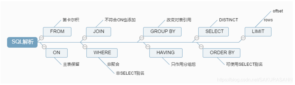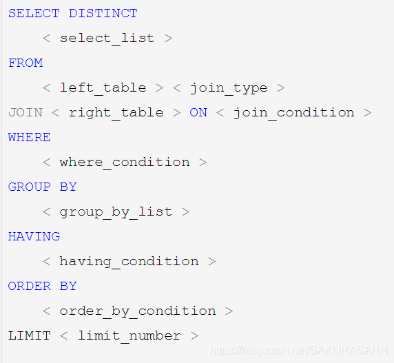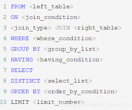 随着Mysql版本的更新换代,其优化器也在不断的升级,优化器会分析不同执行顺序产生的性能消耗不同而动态调整执行顺序。下面是经常出现的查询顺序: