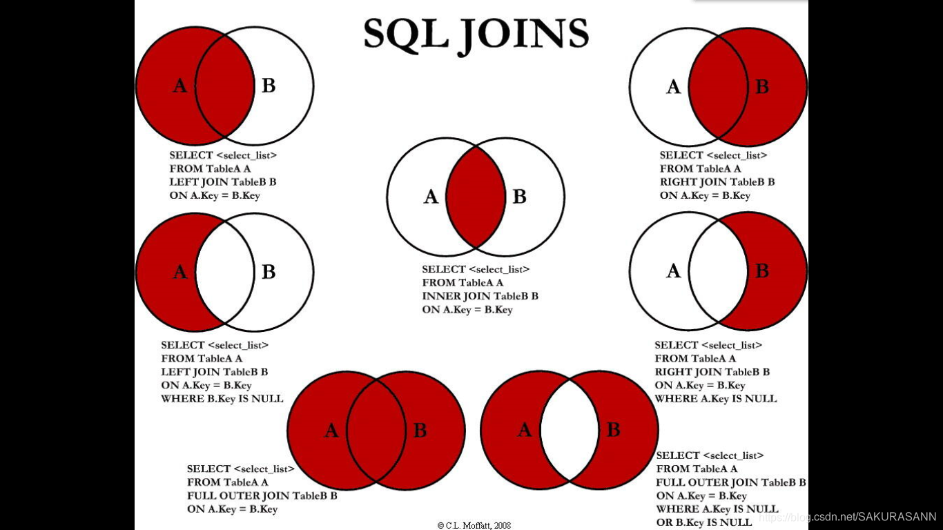 上图说明了join查询的七种模式,这里以实际的sql语句操作对Join查询进行总结。