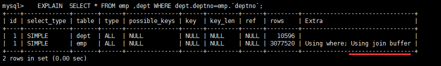 通过Explain查看sql语句执行计划,可以查看到: