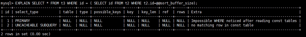上图种的 @@ 表示查的环境参数 ,没办法缓存。