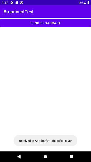 Toast.makeText(context, "received in AnotherBroadcastReceiver", Toast.LENGTH_SHORT).show()