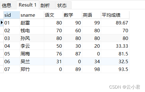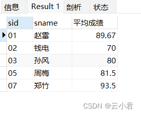 05)查询平均成绩大于等于 60 分的同学的学生编号和学生姓名和平均成绩