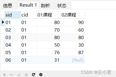 03)查询存在" 01 "课程但可能不存在" 02 "课程的情况(不存在时显示为 null )