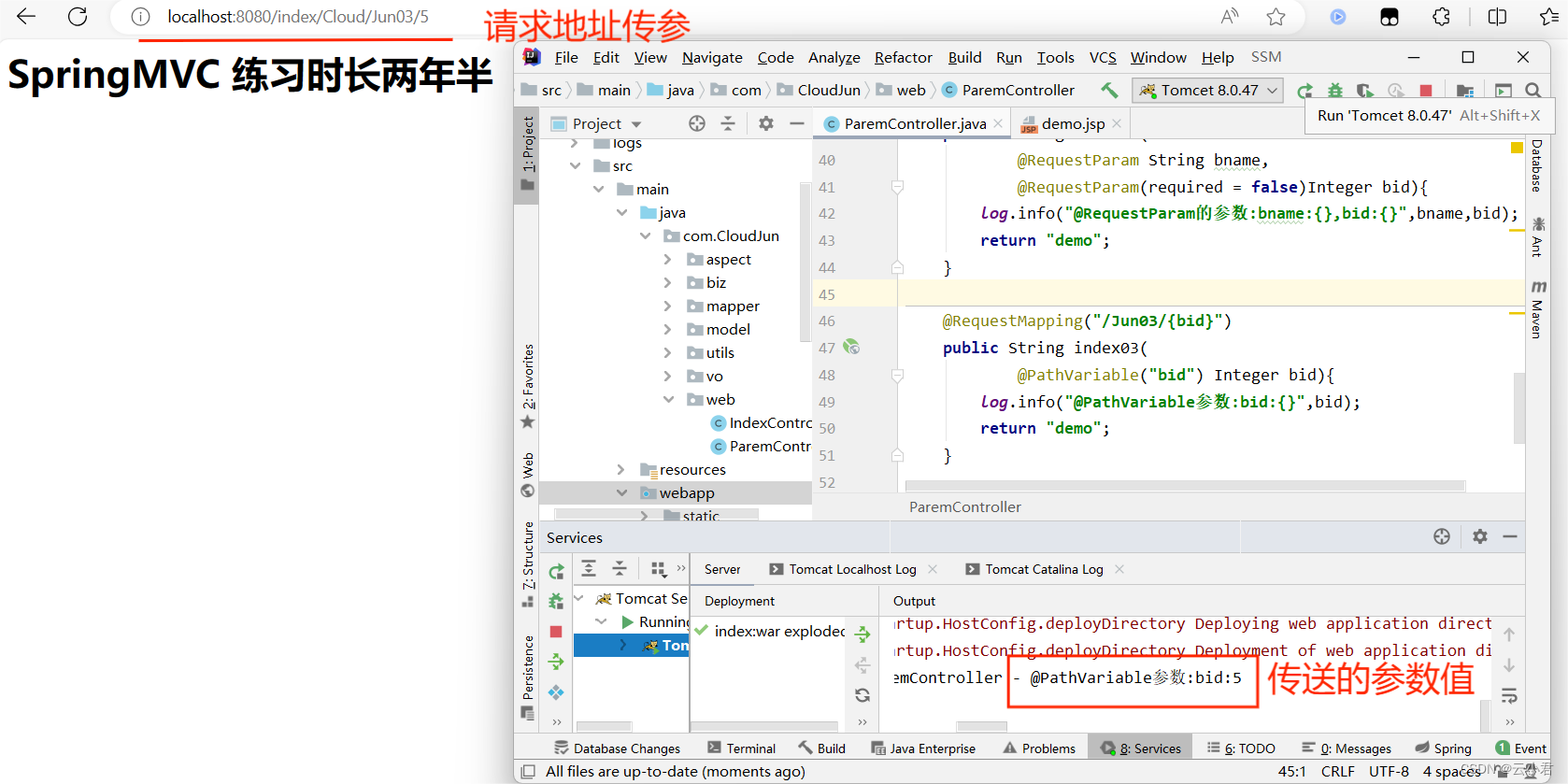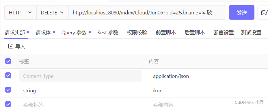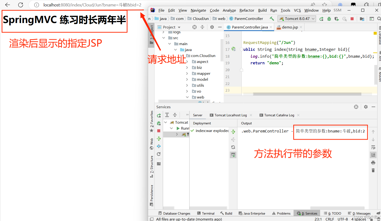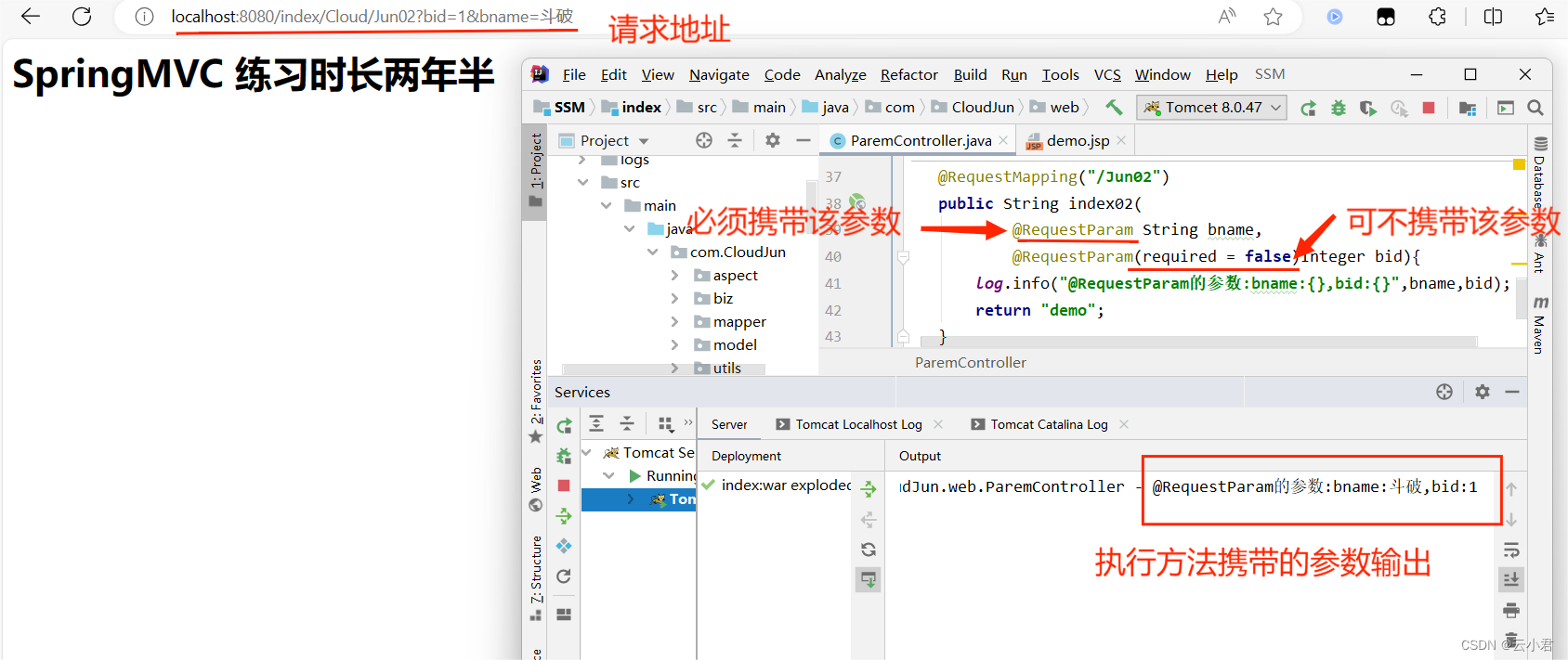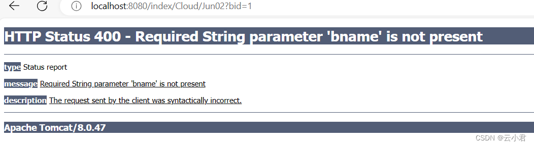 最后请求的地址为: http://localhost:8080/index/Cloud/Jun06?bid=2&bname=斗破