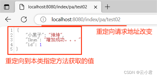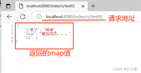 localhost:8080/index/rs/test02 (该请求地址是根据自己的注解配置来进行输入方可)