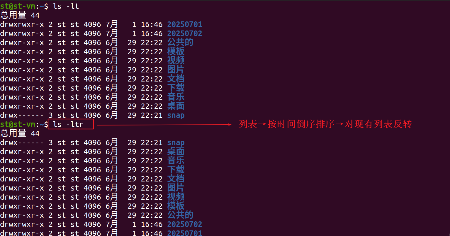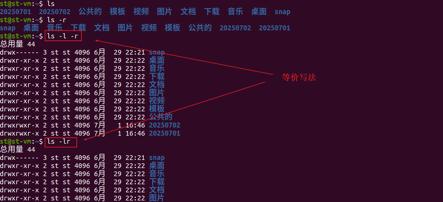 ① cd ~:切换倒当前登录用户的家目录,比如:若当前登录用户为st,cd ~就会切换到/home/st下,等价于cd /home/st。