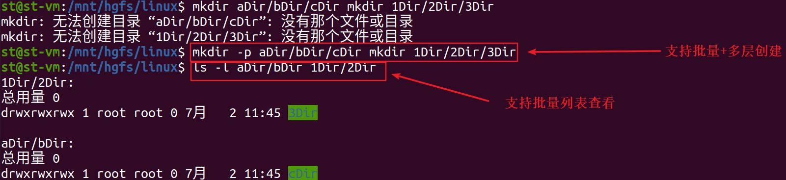 -p:可以创建多层目录(嵌套目录),若中间的目录不存在,会自动创建