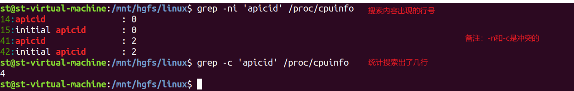 解释:显示搜索到的数量,和-n不能混合使用,因为两者冲突