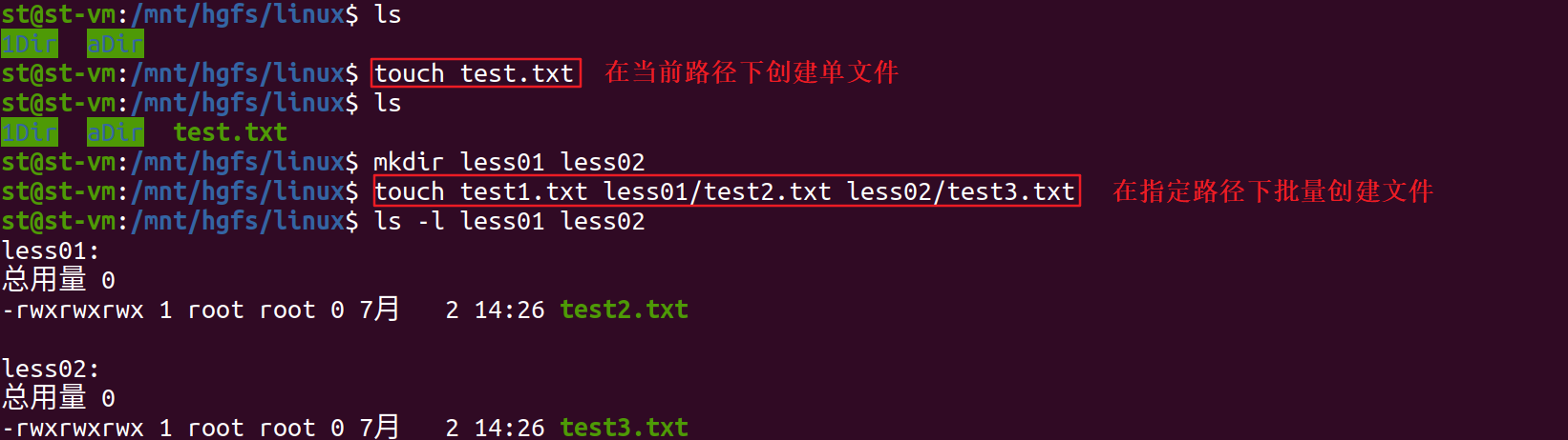 说明:创建新文件,如果文件已存在,则更新其访问和修改时间。