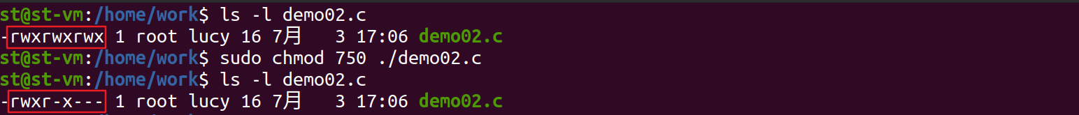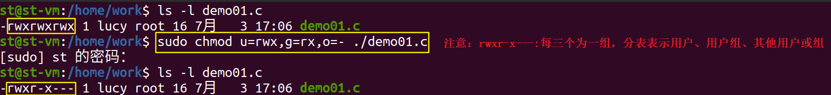 sudo chmod 750 /home/work/demo01.c
