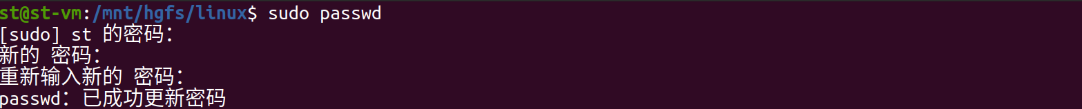 注意:终端输入密码的时候,没有提示。如果输入错误,回车键后会提示重新输入。
