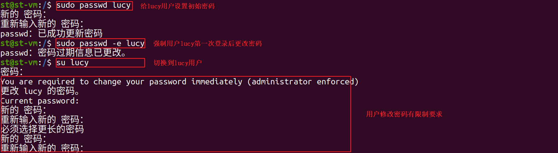 sudo passwd lucy