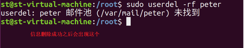 # 解释:删除用户peter,并在不提示任何信息的前提下递归删除peter在/home下对应的用户文件夹(/home/peter)