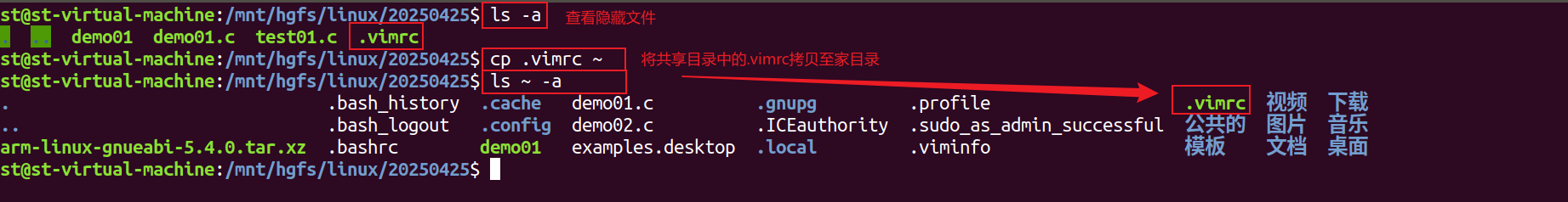 cp /mnt/hgfs/共享目录路径/.vimrc ~/