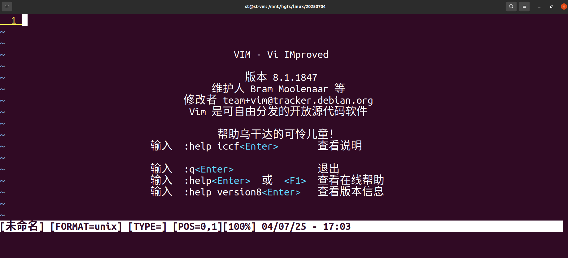 vim 文件路径 # 光标在文件开头,适合空文件