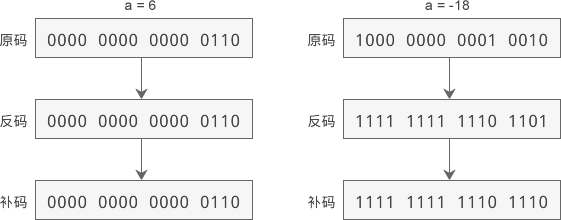② 从内存取数据(二进制形式):二进制补码 → 二进制反码 → 二进制原码 → 程序原始数据
