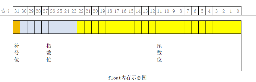 | 单精度浮点数 | 4 | 1位[31] | 8位[30~23] | 23位[22~00] | 127 |