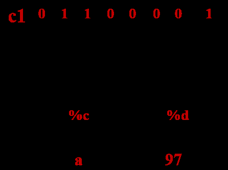 c1在内存的存储形式以及不同形式的输出,如下图所示: