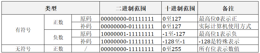 有符号和无符号数在内存中的存储形式(以char类型举例):