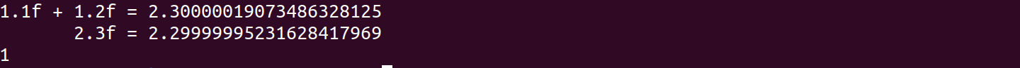 float a = 1.1f + 1.2f; // a 预测结果:2.3f