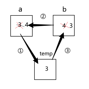 每一次比较过程中,两个数涉及到位置交换,比如 a = 3, b = 4,交换ab的数据变为 a = 4,b = 3,应该如何实现: