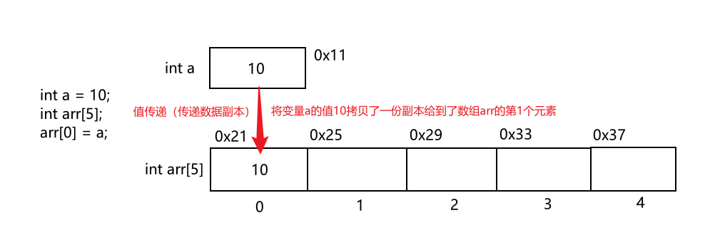 int b = arr[10];// error,报一个错误:下标越界异常,因为访问了一个未知的存储空间