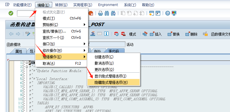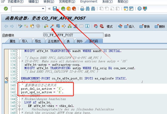 1、SE37,修改函数模块CO_FW_AFFW_POST