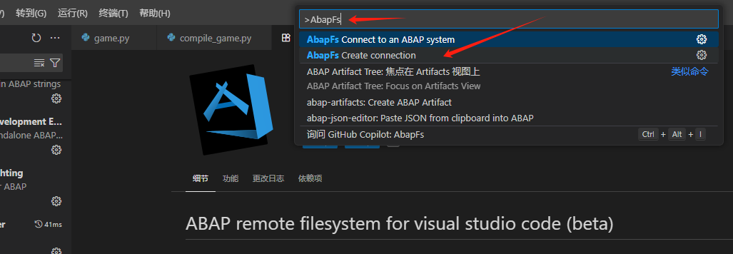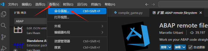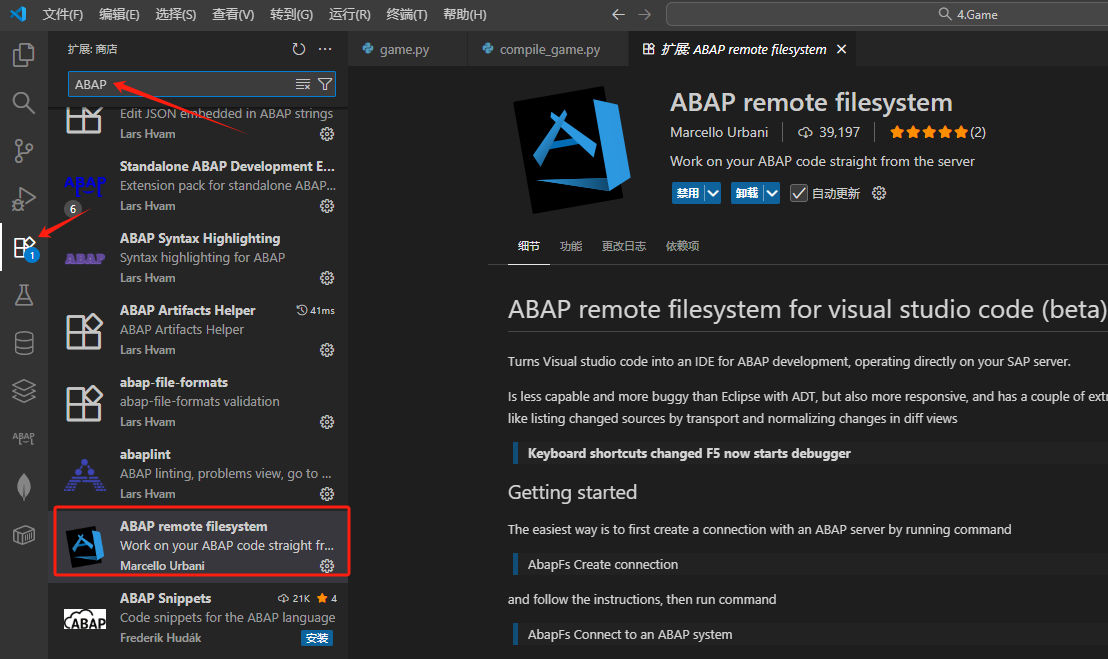 1、在VS Code环境中添加扩展插件ABAP remote filesystem