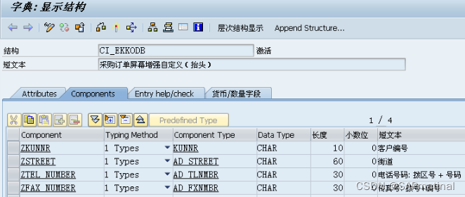 包含表CI_EKKODB 为客户自定义字段结构,追加在 EKKO