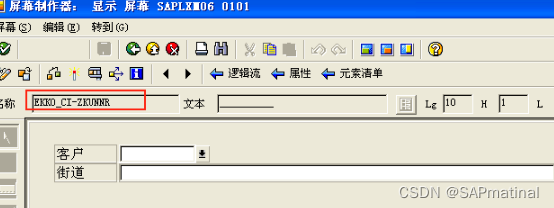 客户的字段名:EKKO_CI-ZKUNNR , 街道的字段名: EKKO_CI-ZSTREET