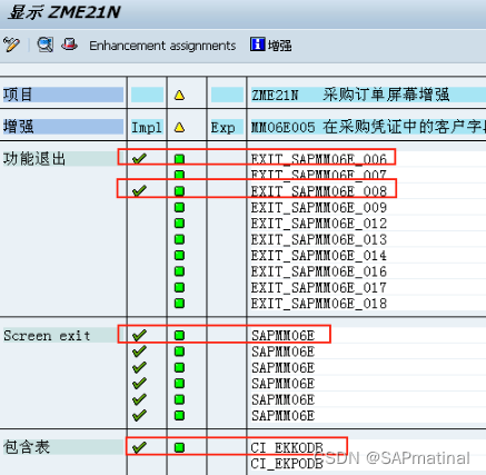 EXIT_SAPMM06E_018 为子屏幕参数传出出口(项目)