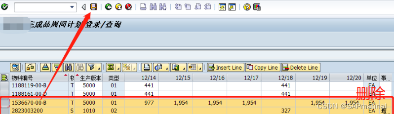 奇怪的是通过选中行项目,点击“删除行”按钮可正常删除,可选中之后直接按下“Del”键删除后保存完成了又显示回来了。