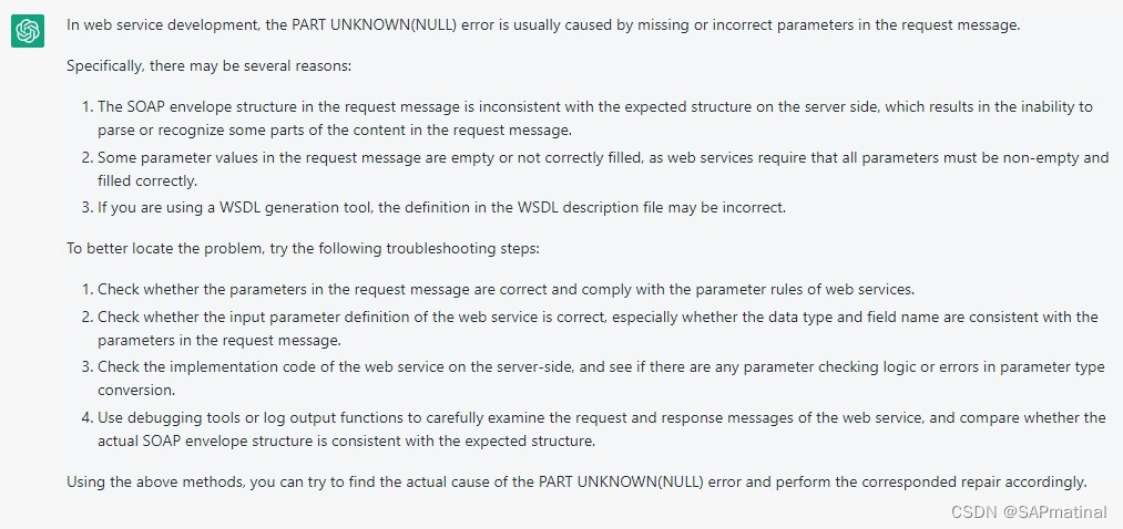 webservice报错:GENERAL_ERROR Error duing proxy processing (PART UNKNOWN (NULL))的解决方案有以下几种: