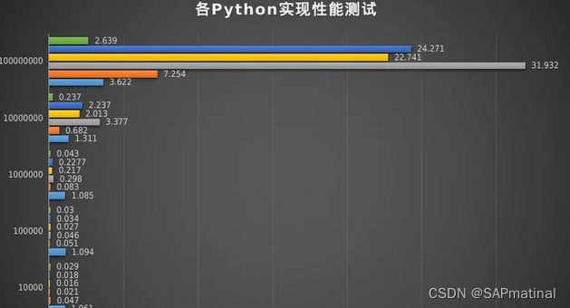 笔者自己对目前各Python进行了一次随机的性能测试,测试的算法依然是埃拉托斯特尼