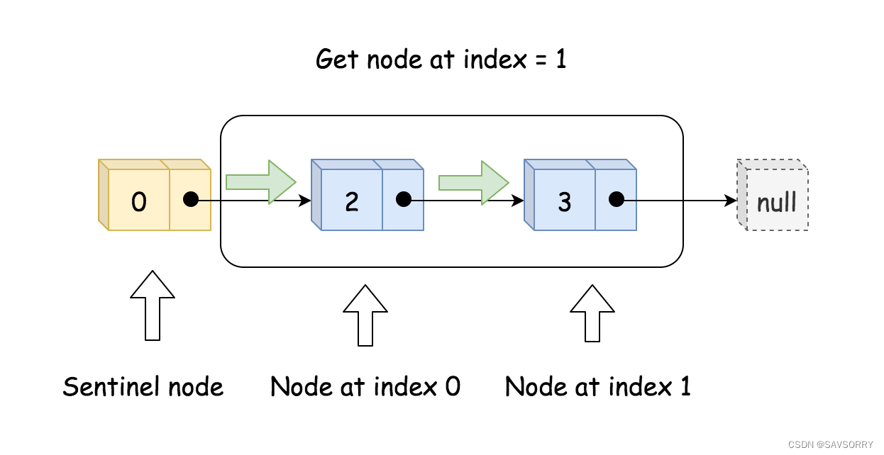 单链表:(需注意head.next才是index=0的节点,哨兵节点不变动)