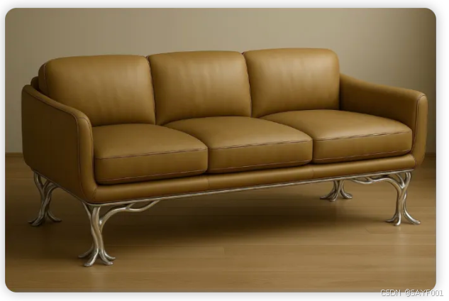 比如以上方案一,再对 AI 输入:扶手和靠背高度有落差,扶手外观圆润一点,靠背和桌垫也太硬朗了。