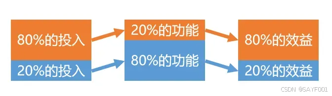 2. 80%的投入可以实现系统20%的功能,但是可能带来80%的效益