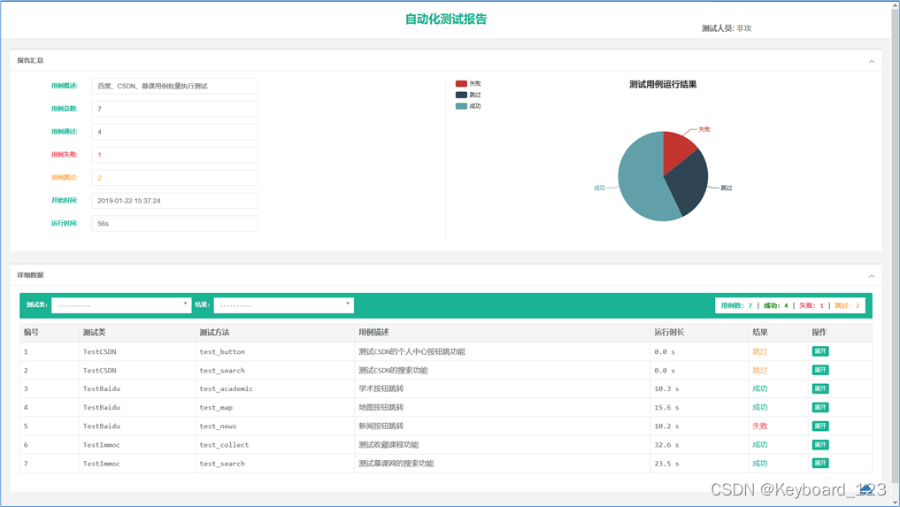 嗯~,笔者根据自己的喜好和对我们现有框架的适配,对BeautifulReport模块做了稍许优化,感兴趣的可以到我的资源下载优化过的BeautifulReport模块:BeautifulReport-Web服务器文档类资源-优快云下载很方便整合到selenium自动化测试框架的,完美结合多线程技术的测试报告生成模块——Beautif更多下载资源、学习资料请访问优快云下载频道.