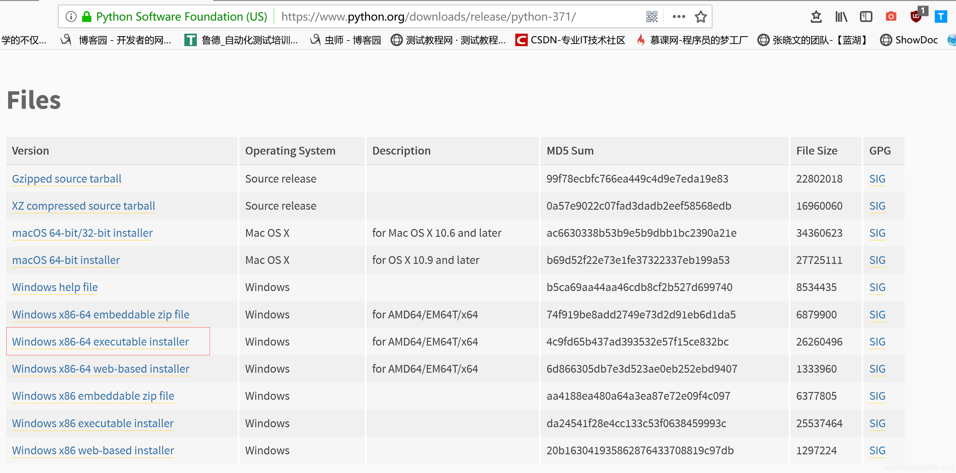 点击进去将页面往下拉,会看到下图python3.7.1各种下载版本,我们选择离线安装的版本,如图。