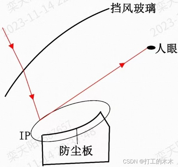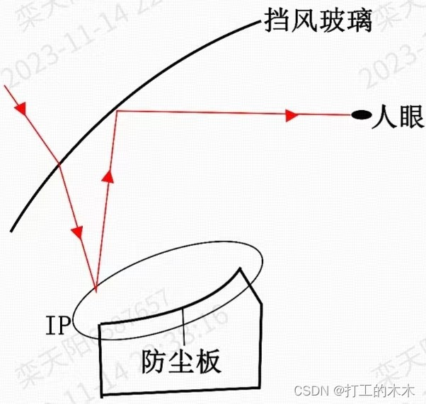 产生原因:外界光源-IP-人眼 外界光源-IP挡风玻璃-人眼